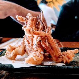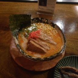 I was so happy the paitan ramen was available. It was excellent. I didn't really read the menu and when asked said sure to making it deluxe. So it also came with a delicious 5 spice chicken leg quarter with bean sprouts on a sizzling iron platter. That was too much food, but I still ate a lot of it. The service was good and the kitchen was quick. Everyone at the table enjoyed their food. Our vegan diner said their ramen was the best one they've ever had. The chicken karaage was very good. The tempura Brussels Sprouts were kind of bland.
